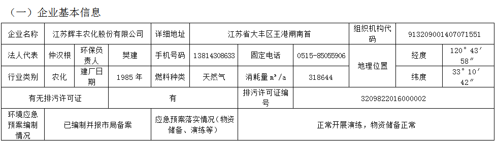 江蘇輝豐農(nóng)化股份有限公司環(huán)保信息公開!
