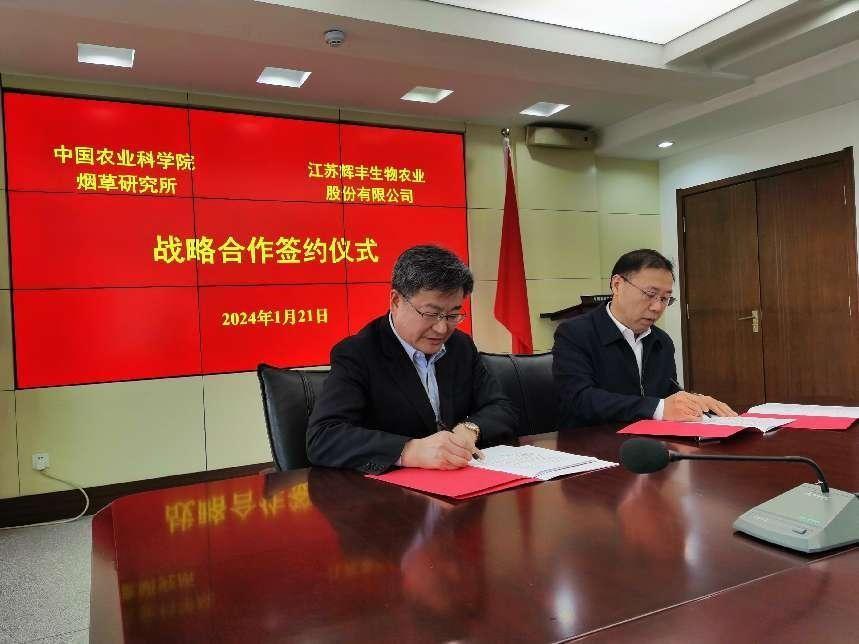 1月21號(hào)上午,中國農(nóng)業(yè)科學(xué)院煙草研究所、輝豐生物戰(zhàn)略合作簽約儀式在青島舉行。中國農(nóng)業(yè)科學(xué)院煙草研究所所長、首席科學(xué)家張忠鋒,副所長、研究員戴培剛,所長助理、研究員李義強(qiáng),輝豐生物董事長仲漢根等領(lǐng)導(dǎo)和專家出席簽約交流活動(dòng)。