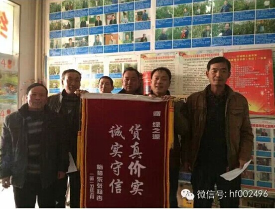 山西運(yùn)城市臨猗縣綠之源農(nóng)資連鎖服務(wù)中心系江蘇輝豐農(nóng)化股份有限公司縣域工作站,2015年1月13日,一場(chǎng)感人的“軍民魚(yú)水情”在運(yùn)城鹽湖農(nóng)資市場(chǎng)綠之源農(nóng)資連鎖服務(wù)中心門(mén)口上演。來(lái)自臨猗東張楊杏村的村民們?cè)诖宕淼膸ьI(lǐng)下,給運(yùn)城綠之源農(nóng)資送來(lái)了一面寫(xiě)有“貨真價(jià)實(shí),誠(chéng)實(shí)守信”的錦旗,以表示他們對(duì)運(yùn)城綠之源衷心的感謝。